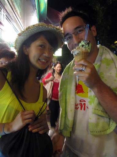 Enjoying some street food! With Kelvin and Chris